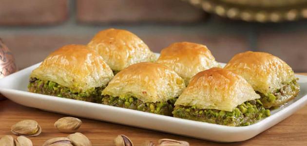 نقطع البقلاوة بالشكل والحجم المُناسب، والشّكل المعروف لَها وهوَ الشّكل الماسيّ، وَعِند التقطيع عَلينا التأكُّد بأنَّ السّكينة قطّعت جميع طبقات العجينة.