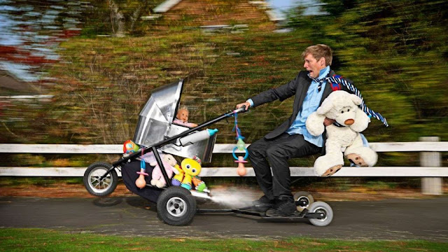 هذه هي أسرع عربة أطفال في العالم، والتي لديها سرعة قصوى تبلغ 85 كلم / ساعة.