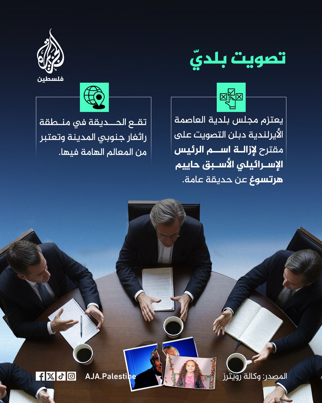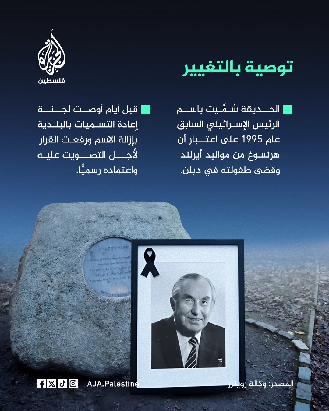 7 "دبلن" تتجه لتغيير اسم حديقة "هرتسوغ" إلى "هند رجب" ... تجميعي